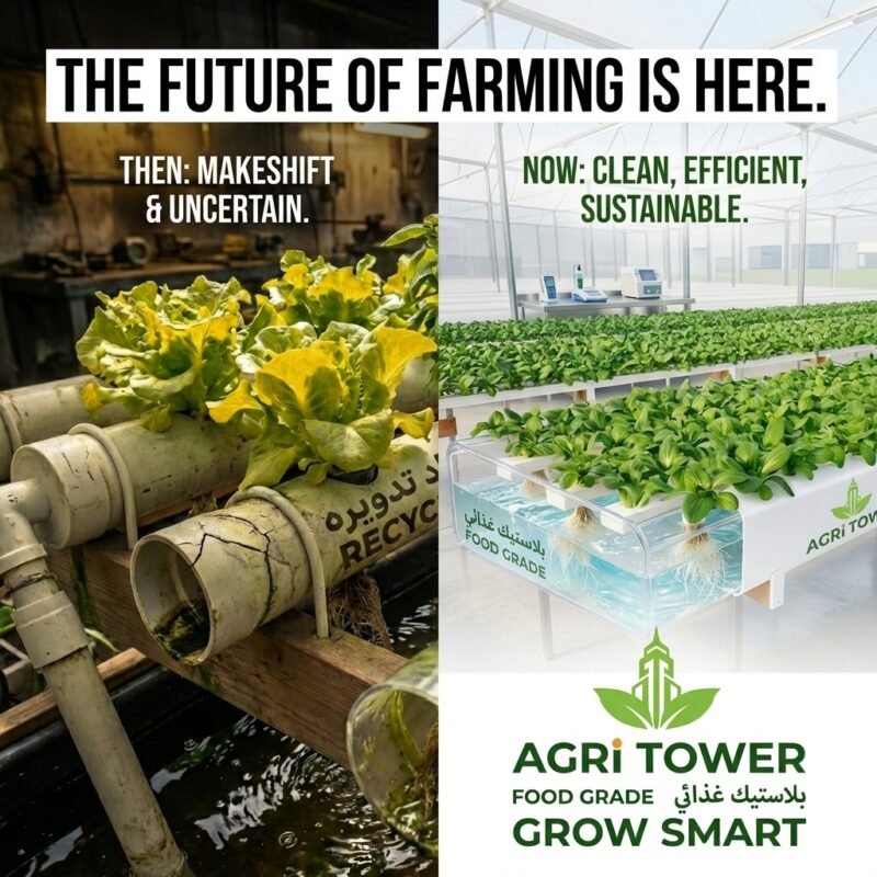 بالتأكيد، نظام أجري تاور مصنع من مادة  البلاستيك الغذائى المخصص للغذاء ، وهي خالية تماماً من الرصاص والسموم، مما يضمن لك محصولاً صحياً وآمناً لعائلتك