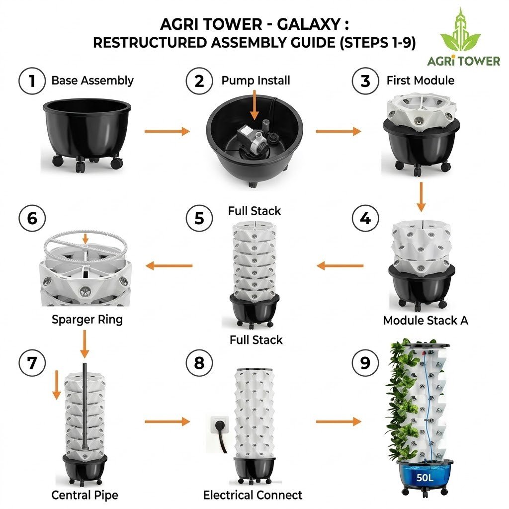 Agri Tower – Galaxy Genius Smart System is engineered for those who don’t compromise. With 48 planting slots distributed across 6 high-performance layers, this system transforms any corner of your home or rooftop into a high-yield organic farm.